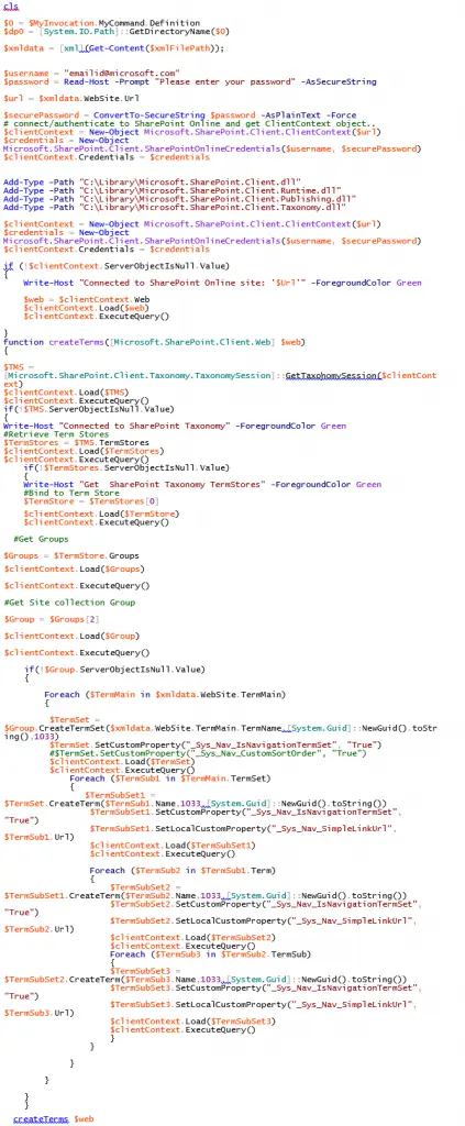 I have created Library folder to keep all required .DLL files, which I’m referring in the code.Below code will create Term sets based on provided XML inputs.
