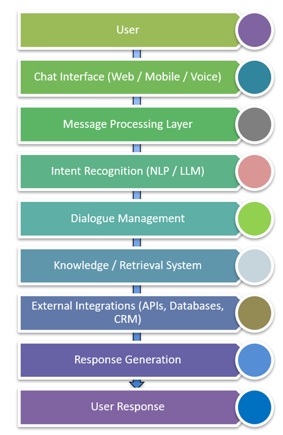 A chatbot system usually consists of multiple AI and integration layers. Testing must validate each layer independently and as a system.